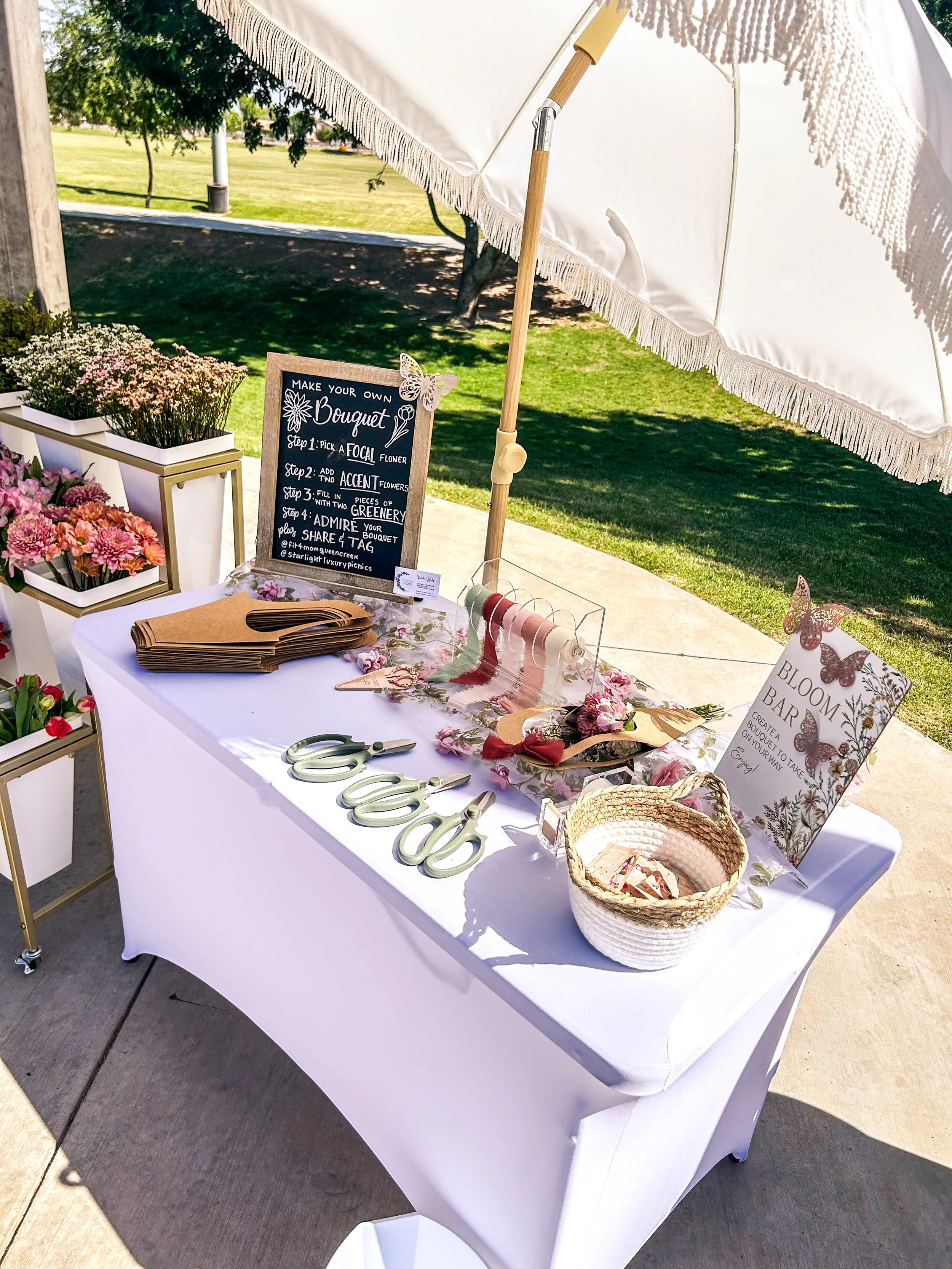 -Flowers are prepped, cleaned and ready for bouquet making!Drop off, set up, clean up and pick up included